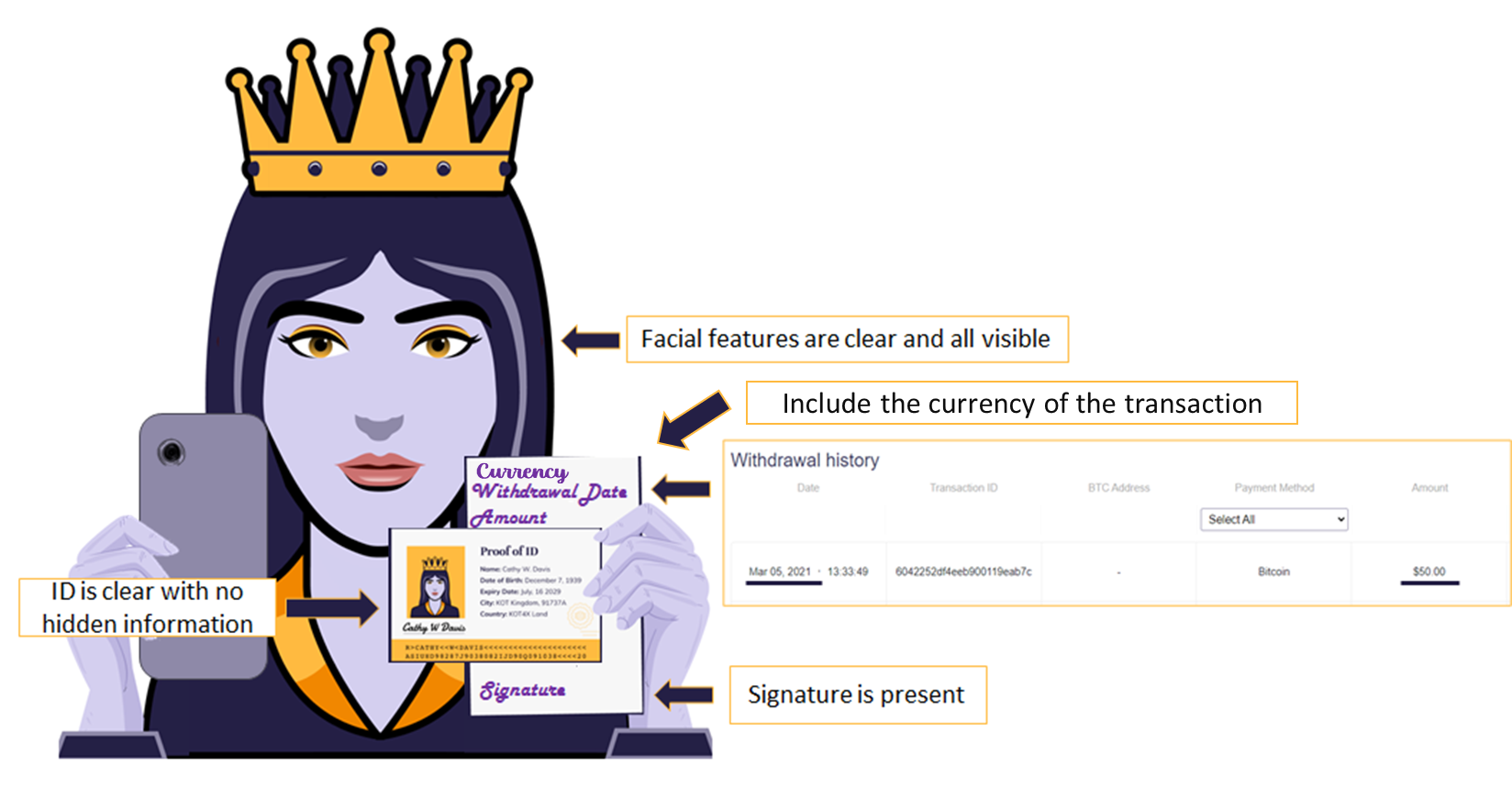 There could be a time when the Payments team will request a selfie from you. This request is in place as an additional security layer to safeguard our client’s funds.